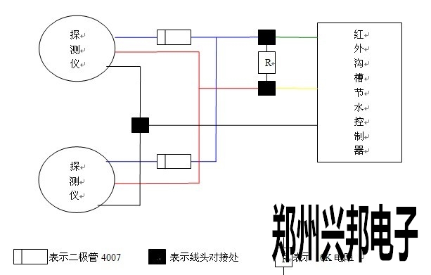 一臺(tái)紅外溝槽節(jié)水控制器連接兩個(gè)紅外探測儀線路修改說明