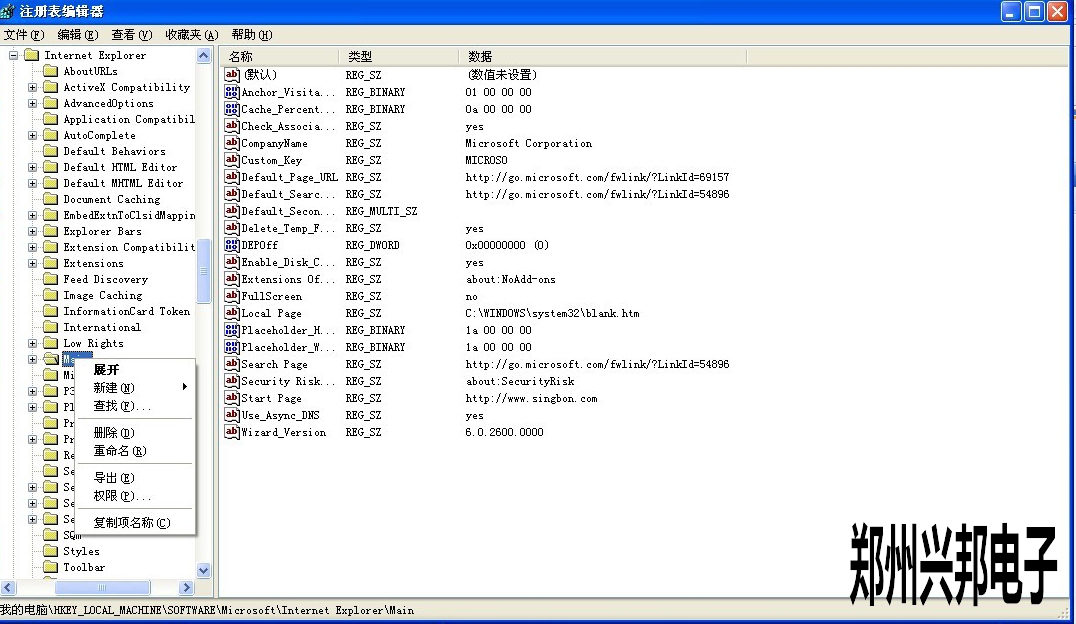 2. 在彈出來的“注冊(cè)表編輯器”界面上,選擇HEEY_LOCAL_MACHINE\SOFTWARE\Microsoft\Internet Explorer\Main