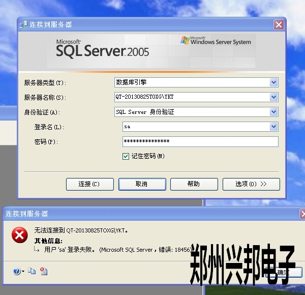 公司開發(fā)的can軟件,是用在水控機,售飯機上的,它的功能在不斷的完善,使數(shù)據(jù)顯示越來越簡單明了,想看數(shù)據(jù)明細記錄,可以選擇明細查詢,而如果想看總記錄,可以選擇統(tǒng)計查詢。這些數(shù)據(jù)全部都存儲在數(shù)據(jù)庫2005中,當用戶登錄數(shù)據(jù)庫出現(xiàn)如下錯誤,如何解決,如圖所示: