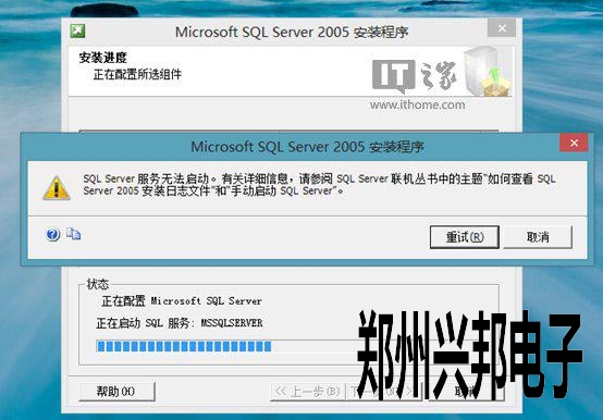 6、當(dāng)出現(xiàn)Sql Server 2005無(wú)法啟動(dòng)時(shí),這個(gè)時(shí)候就不先點(diǎn)擊重試或者取消。
