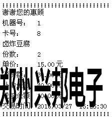 若連接的有打印機(jī),消費(fèi)后可直接進(jìn)行打印,打印內(nèi)容如下圖所示: