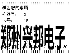 ② 計(jì)算模式:輸入扣費(fèi)金額,按[確認(rèn)]鍵,將卡片放于卡區(qū),即可進(jìn)行扣費(fèi),若連接的有打印機(jī),可直接打印消費(fèi)明細(xì),打印出的信息如下圖所示: