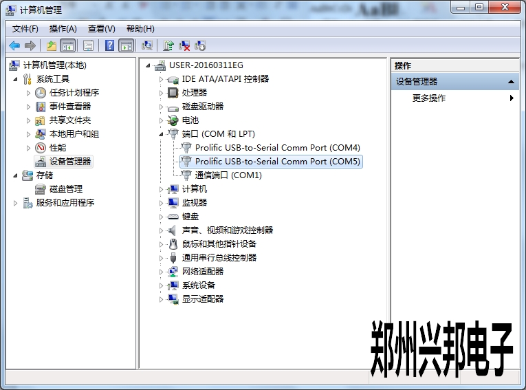 串口號查看方法,計算機右鍵——管理——設(shè)備管理如下圖所示