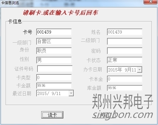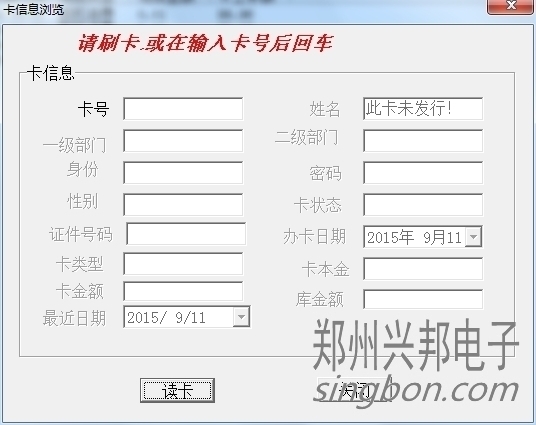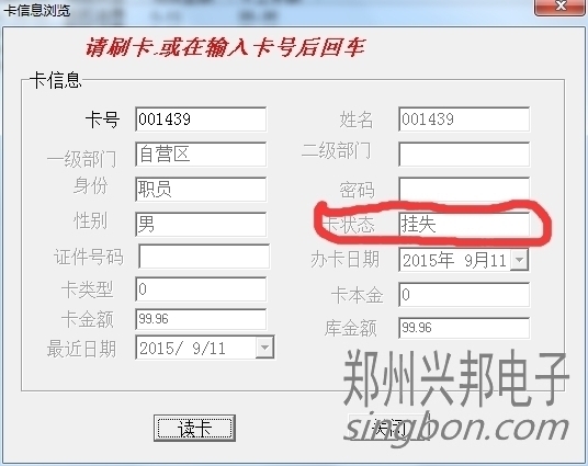 卡片就上面三種狀態(tài),另外一些操作,會造成卡狀態(tài)改變,比如:掛失的卡解掛,就變成消費卡;掛失的卡補辦新卡,掛失卡就會變成新卡;消費卡被收繳舊卡就變成新卡。新卡在消費機上刷卡會顯示1-Err,消費卡會顯示金額,掛失卡會顯示4-Err。