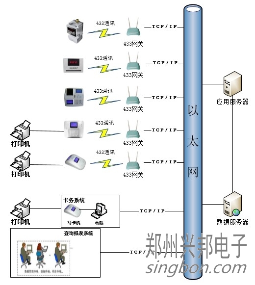 [文章內(nèi)容簡介]:BS平臺IC卡中文液晶顯示消費(fèi)機(jī)433通訊網(wǎng)絡(luò)拓?fù)鋱D。