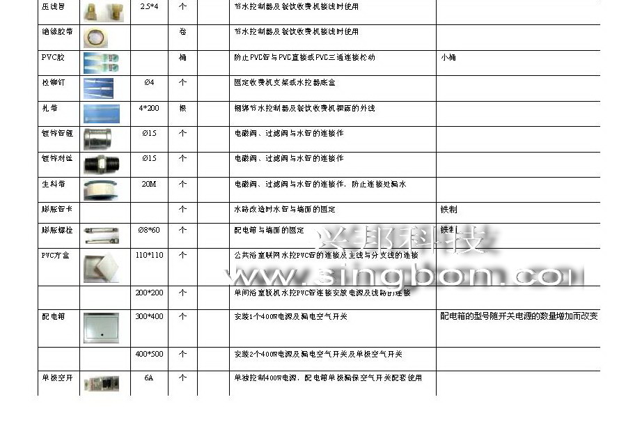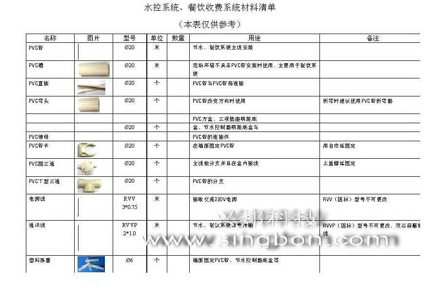 食堂售飯、消費(fèi)、水控等系統(tǒng)施工中所需要的材料規(guī)格清單